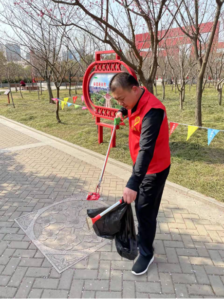 2022年3月11日下午,304永利集团教师党员志愿者一行来到羊山新区百花园,开启以“美好生活看信阳”为主题的党员志愿系列服务活动。