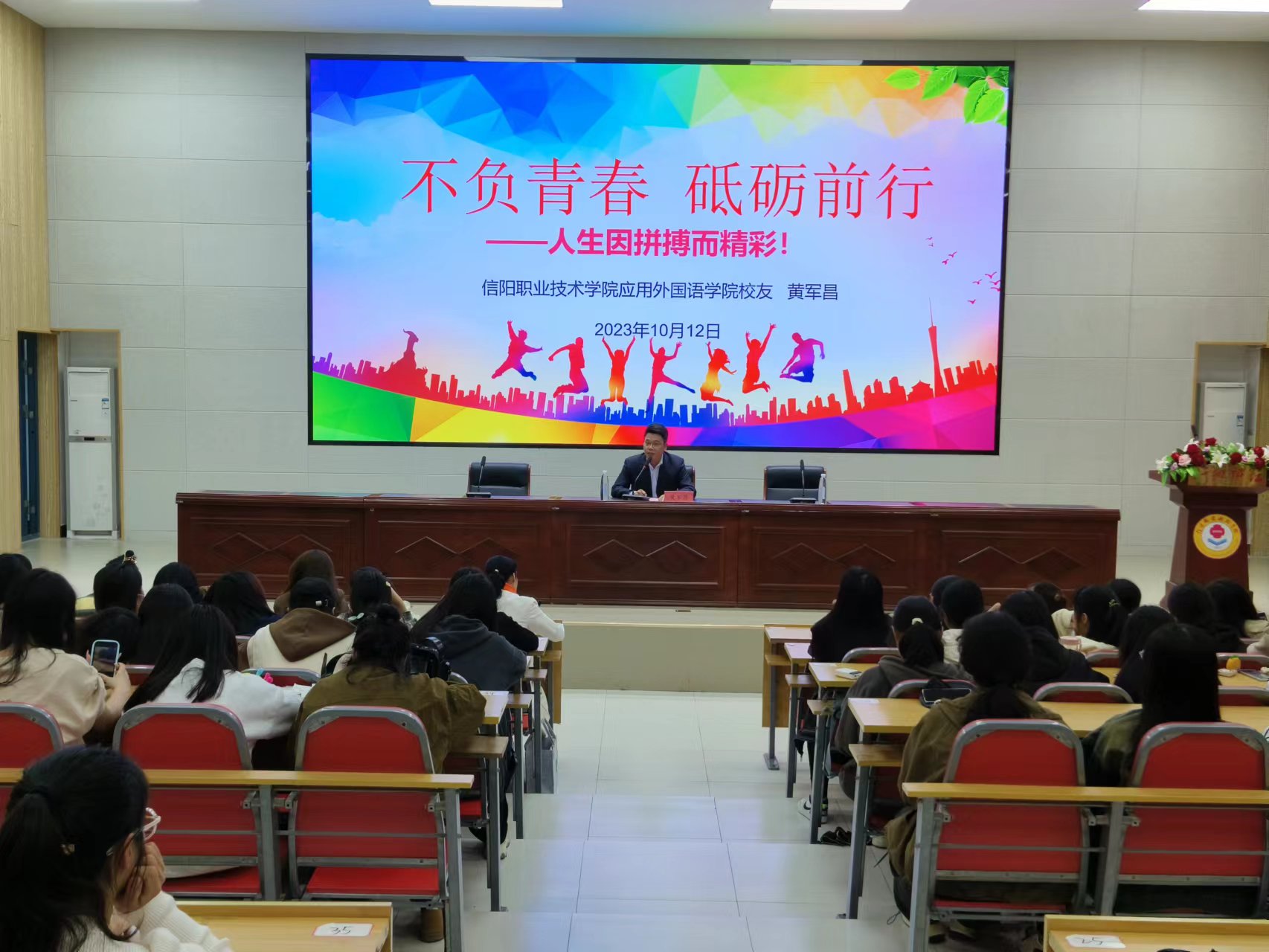 10月12日和14日下午,01级英语教育专业员工黄军昌、04级英语教育专业员工左玲励志报告会分别在医公司报告厅3107举行,2022、2023级商务英语、英语教育专业全体员工参加了报告会,报告会由党总支副书记张泽锋主持。