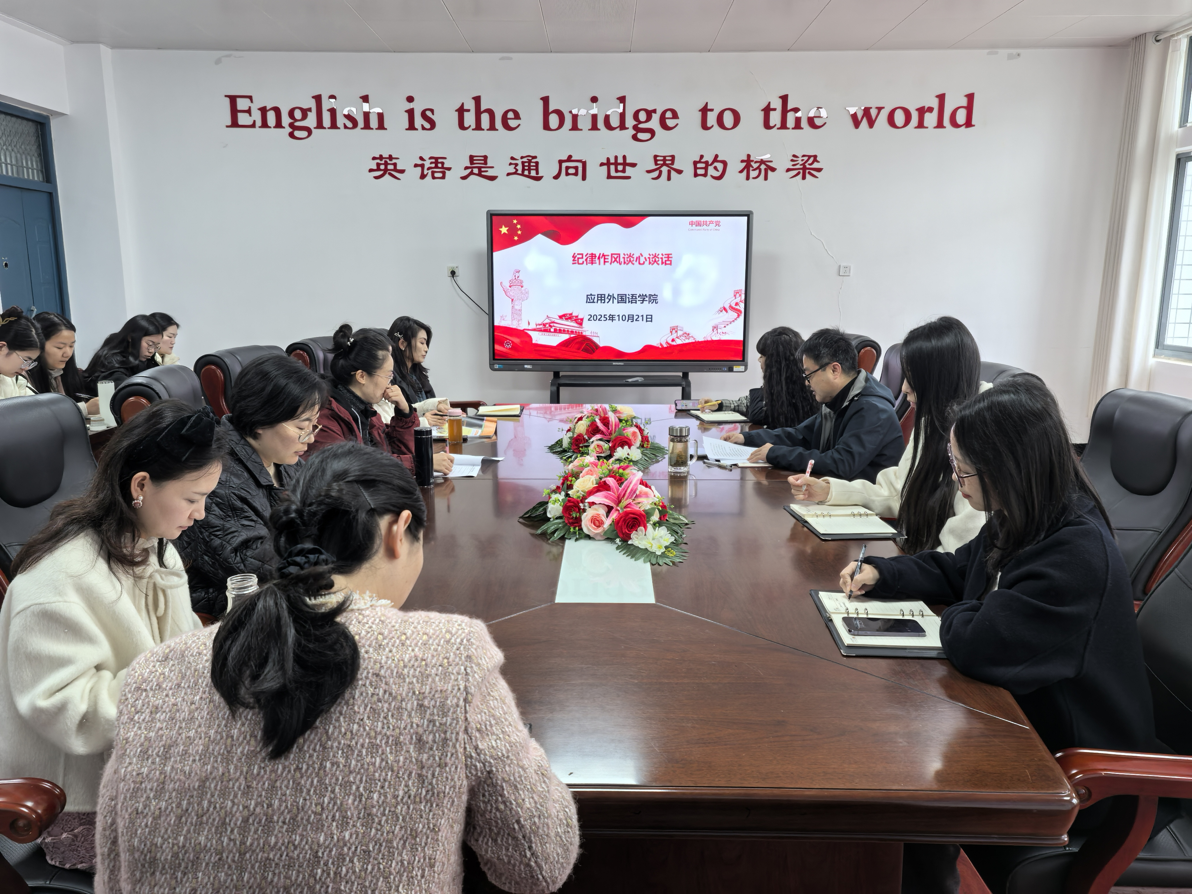 为深入贯彻落实公司党委关于开展“纪律规矩教育月”及“青年知廉”警示教育活动的统一部署要求,切实增强公司党员干部及青年教师的纪律意识、规矩意识和廉洁自律能力, 2025年10月22日,304永利集团在2406会议室组织召开“面对面”纪律作风谈心谈话会。公司党总支书记徐昊与教研室负责人、青年教师代表进行了集体谈心谈话。
