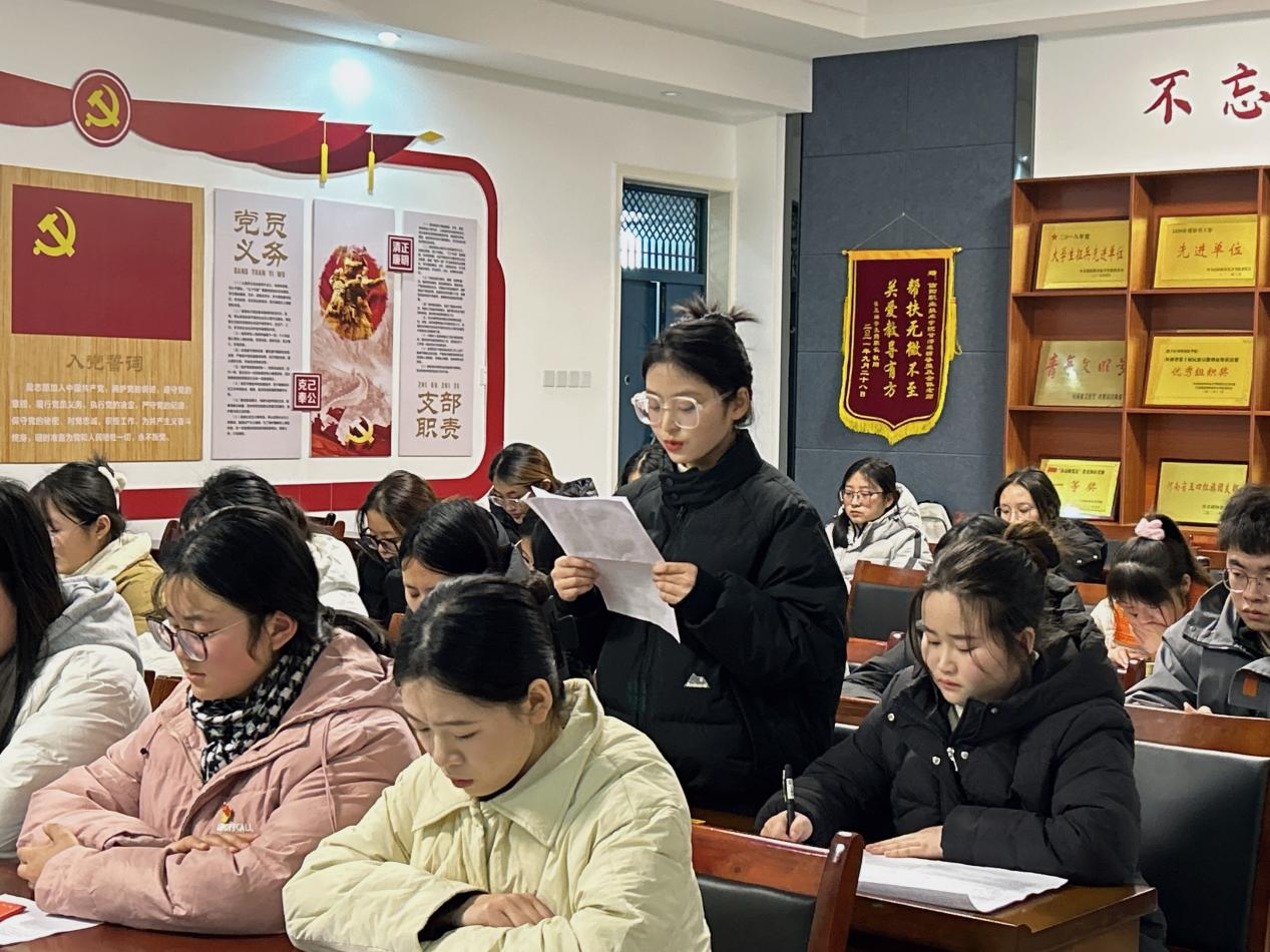 会议严格按照预备党员接收大会程序进行,首先宋爽等9名发展对象分别汇报了自己的基本情况、入党动机、理论学习和实习情况以及需要向党组织说明的其它问题,各位培养人介绍了对发展对象的培养教育情况并表明意见。