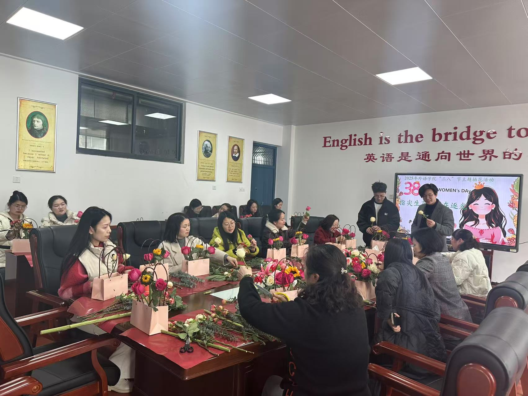 为庆祝2025年“三八”国际劳动妇女节,应用外国语公司教工党支部于2025年3月7日下午15:00在公司A2406会议室举办了“指尖生花 自在逐光”插花主题党日活动。公司女教师们欢聚一堂,在花香四溢中感受插花艺术的魅力,共度美好节日时光。
