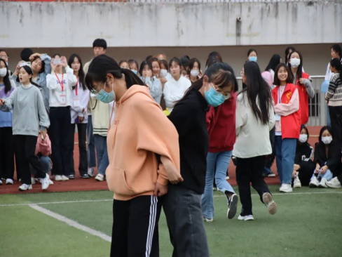 本次活动共设三项,分别为“友谊拔河赛”、“螃蟹运球赛”、“两人三足赛”。首先,在考验团队协作能力的拔河比赛中,参赛选手们咬紧牙关使出全力,班级啦啦队在一旁为其加油助威,运动场上呐喊声及欢笑声此起彼伏,现场气氛热烈而和谐。接着,“螃蟹运球赛”开始进行,各小组激烈角逐,差距微乎其微,展现了极好的团队风采。随后,在“两人三足赛”中,选手们积极配合,手挽着手齐喊口号,以整齐的步伐稳步向前,掌握节奏后便不断加速,全力冲向终点。运动场上充满了和谐友爱的气氛,各班同学积极参赛,欢声笑语不断。至此,本次秋季趣味运动会圆满结束。