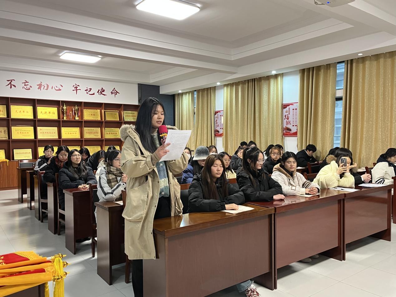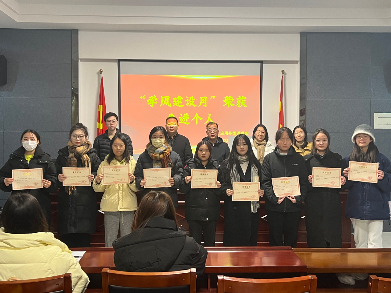 会议第一项,主持人宣布“先进班集体、先进个人、文明宿舍”名单,与会老师给获奖的集体和个人颁发荣誉证书和奖品,并合影留念。会议第二项,“先进个人”代表王一宁发言,她表示在生活学习中自己求真务实、一丝不苟,在工作中恪尽职守,建立起老师与员工之间沟通的桥梁。会议第三项,张泽锋发表总结讲话,对获奖集体和个人的突出表现给予了充分的肯定和祝贺,希望大家发挥榜样作用,敢于担当,奋力前行。