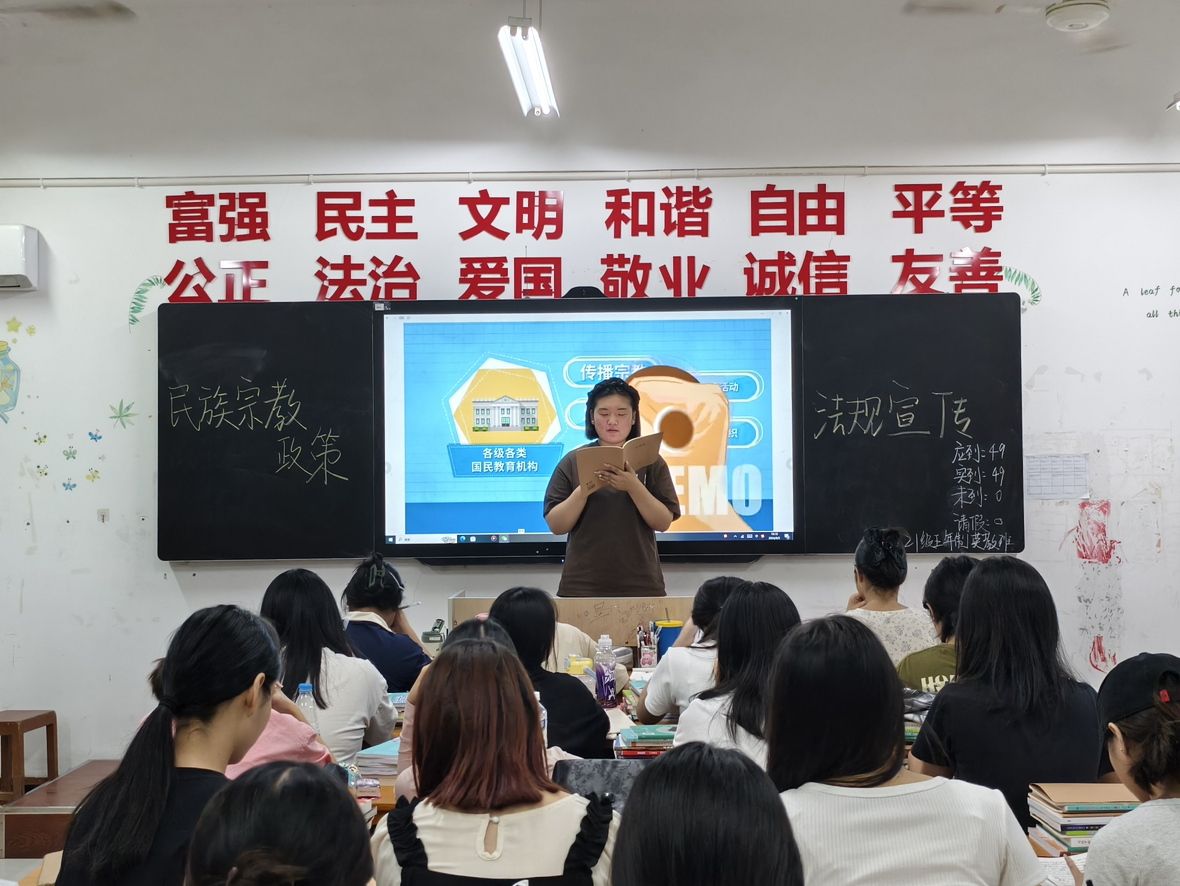 首先,各班班长组织全班同学观看“宗教政策法规宣传”视频,帮助同学们了解有关邪教的基本概念,认识到邪教的危害。接着,各班主持人结合老员工中国特色社会主义民族宗教理论知识手册对民族宗教政策做了进一步讲解,让同学们深刻理解宗教渗透的危害性以及防范宗教渗透的方法。最后,各班员工围绕主题展开了热烈的讨论。