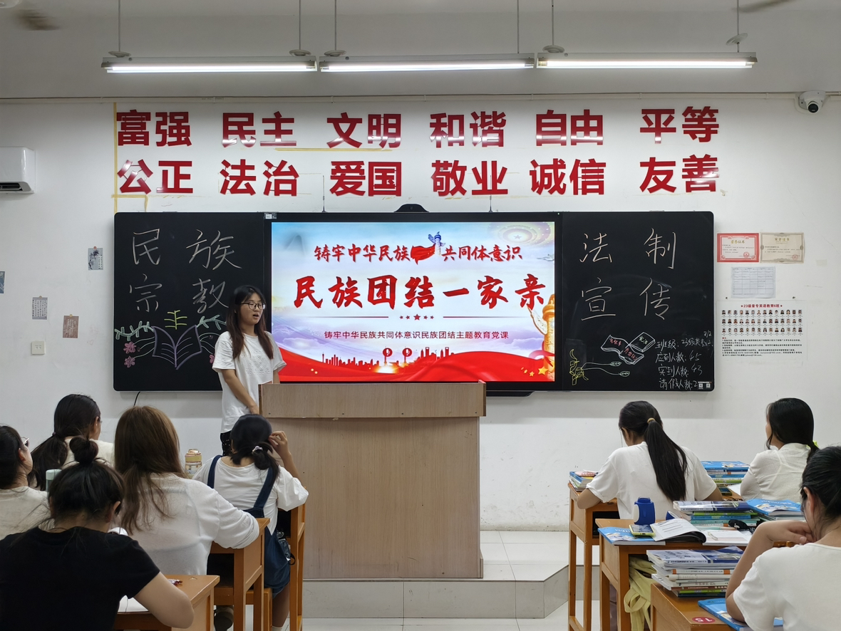 为加强员工思想政治教育,强化安全防范意识,教育员工铸牢中华民族共同体意识,防邪教、防宗教渗透,304永利集团于2024年9月3日晚自习召开“民族宗教政策法规宣传”主题班会,班会由各班班长主持。