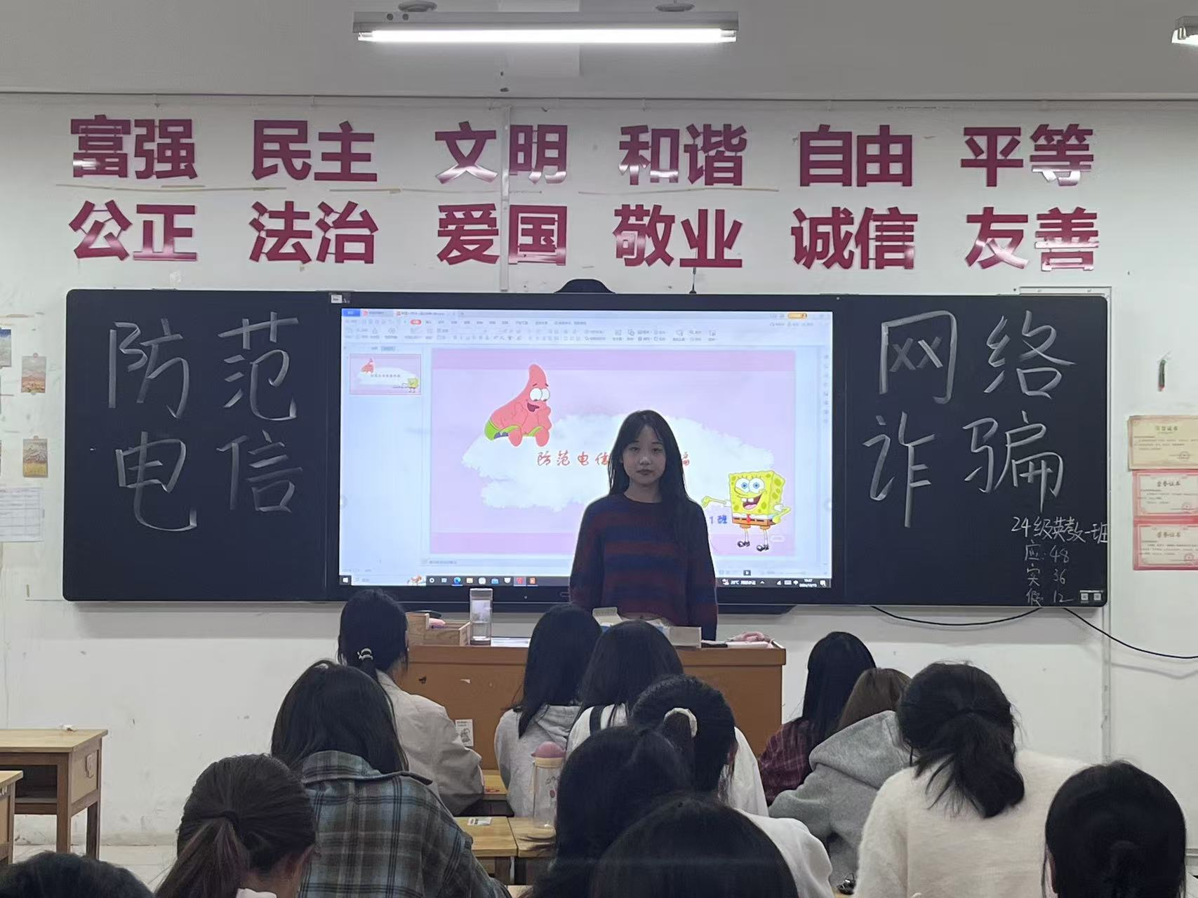 为进一步普及防诈骗知识,提高同学们的安全防范意识,304永利集团于2024年10月15日晚组织开展“防范电信网络诈骗”主题班会,班会由各班班长主持。