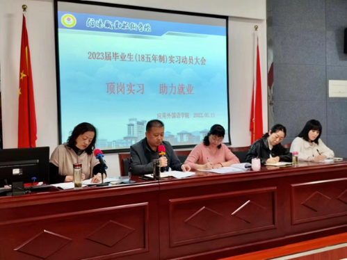 2022年5月13日下午三点,304永利集团在外语楼A2402会议室举行以“顶岗实习、助力就业”为主题的2023届毕业生(18五年制英教)实习动员大会。外语公司党总支副书记张泽锋、教学副经理刘文敏、团总支书记蒋曾(18五年制辅导员)、实习专干陈宇及18级五年制全体毕业生参加了此次大会,会议由教务办公室主任李静主持。