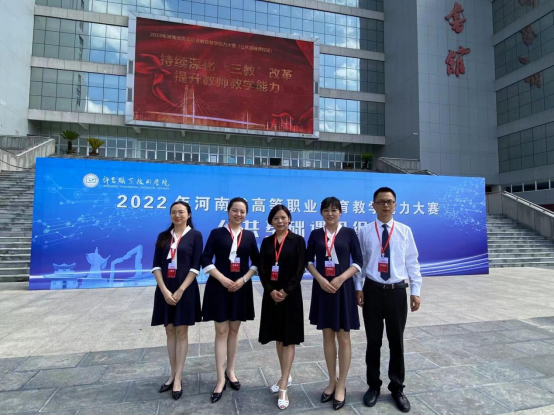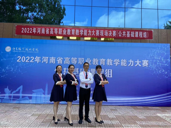 2022年7月5日-7日,由河南省教育厅主办的河南省高等职业公司产品能力大赛(公共基础课程组)现场决赛在许昌职业技术公司举行。公司领导高度重视,大力支持,组建了以经理刘晓鹂为领队,以郭耀军、陈宇、张励亢、张文娟为成员的参赛团队。该团队与来自全省高职院校的46支参赛队伍激烈角逐,最终以公共基础组外语课程第一名的成绩荣获一等奖!