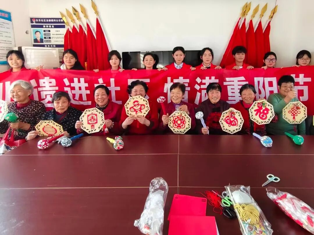 重阳佳节,公司师生党员与志愿者走进信阳市永乐社区,开展“非遗进社区,情满重阳节”主题活动。员工们不再是讲台下的学习者,而是传统文化的传播者、跨代沟通的实践者。他们与老人共同剪纸、制作艾草香囊、手扎艾锤,在一次次协作中,语言化作暖流,技艺承载关怀。剪纸的纹路里,蕴藏的是非遗之美,更是两代人之间的情感对话;艾香缭绕间,员工们用行动打破隔阂,让陪伴成为最真挚的节日礼物。