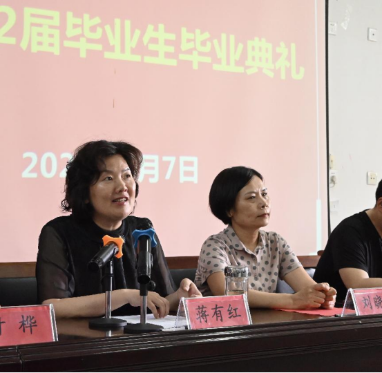 在热烈的掌声中,党总支书记叶桦发表了热情洋溢、情真意切的致辞。她向2022届全体毕业生表示热烈的祝贺,希望她们常怀感恩之心、勇于责任担当、修身律己、求真务实,用奋斗为青春涂上最鲜亮的底色,用自强去谱写新时代答卷人最美华章。
