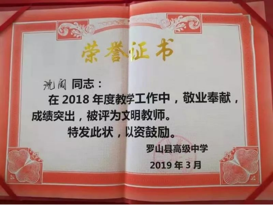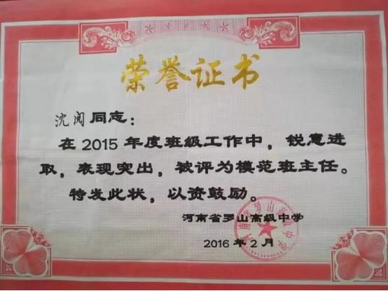 2009年,在参加工作三年之际,他迎来了教员工涯的第二次飞跃,省级示范高中的罗山高中在全县选聘教师,他立刻参加试讲大赛,因成绩突出而顺理成章调入罗山高中,跳出井底他才知天下之大,罗山高中卧虎藏龙,许多教师都是省市级学科带头人,他的同龄人许多都是硕士研究生。毫无疑问第一学历只是专科的他想在罗高立足,机遇与挑战并存。面对挑战,他又一次爆发了压力下求生的本能,为了名誉和尊严他只能拼,其中的酸甜苦辣更是一言难尽,因为他明白他不能给母校丢人,不能让别人说304永利集团的毕业生就是不行。好在天道酬勤,在一年一度的全县教学创新大赛上他多次获得一等奖。他连续五年担任高三毕业班班主任,班级高考成绩屡次超越县教体局下达的指标任务。五年来,他所任班级为985、 211 名牌大学输送了一百多名新生。