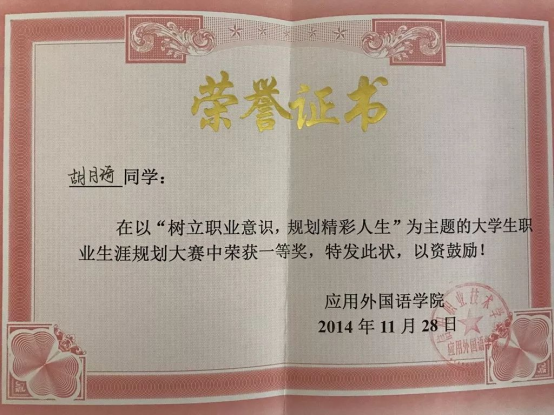 学弟学妹们好,我是胡月琦。相信你们也会为加入304永利集团这个温暖的大家庭而感到开心,公司里的领导、老师永远是那么和蔼可亲,我一直为自己曾是外国语公司的一名员工而感到骄傲自豪。
