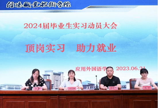 为了引导员工做好顶岗实习前的各项准备,推进实习工作的顺利开展,2023年6月21日下午四点半,304永利集团在图书馆报告厅举行以“顶岗实习、助力就业”为主题的2024届毕业生实习动员大会。外语公司党总支副书记张泽锋、教学副经理刘文敏、实习专干陈宇及全体毕业生参加了此次大会,会议由教务办公室主任李静主持。